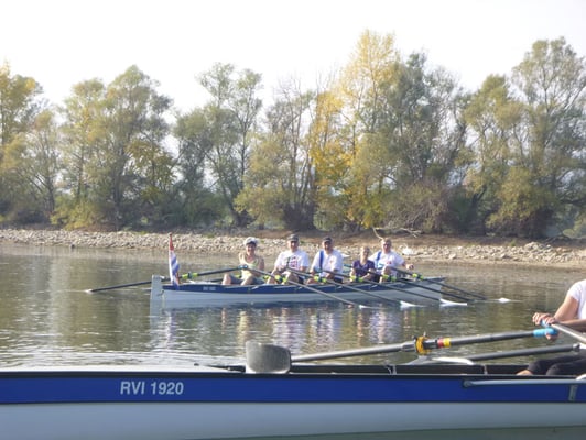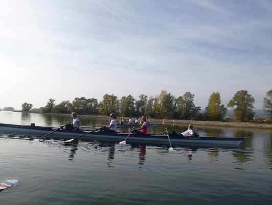 Von Dorothee Folger - Beim Abrudern 2018 hatten wir wieder großes Glück, die Sonne schien, der Wind war schwach, nur das Wasser im Rhein musste man fast suchen. Zwar musste die angekündigte Bootstaufe, bereits einmal verschoben, auch an diesem Tag wegen organisatorischer Hürden entfallen, aber das tat der guten Stimmung keinen Abbruch.