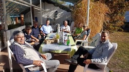 Von Dorothee Folger - Wir hätten gut daran getan, etwas am Gesang zu feilen, denn wir schämten uns nicht, ein holpriges Liedchen anzustimmen. Dieses Mal wurde Wolfgang geehrt, der seinen 60. bei schönstem Kaiserwetter feiern konnte und eine "Überraschungsdelegation" in der Stärke zweier Boote in seinem wunderschönen Gewächshaus empfangen musste.
