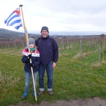 Von Andreas Bachmann - Auf zur Winterwanderung unseres Rudervereins Ingelheim! Ruderkamerad Heiner hatte keine Mühen gescheut und für den 04. Februar eine besonders einfache Strecke von ca. 7km und zwei Stunden Dauer für uns ausgesucht. Das war auch richtig so, denn an der Burgkirche traf sich eine illustre Truppe vom 37 Ruderkameraden und Dolleputzer im Alter von 5 bis über 80 Jahren, verstärkt durch zwei Hunde. Da durfte die Strecke natürlich nicht für Leistungssportler sein. Nach großer Wiedersehensfreude und kerniger Ansprache des Wanderleiters Heiner ging es mit Hipp-Hipp-Hurra – auch gleich steil bergab.