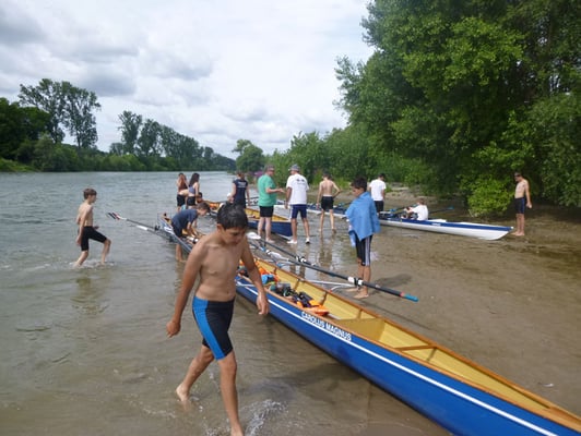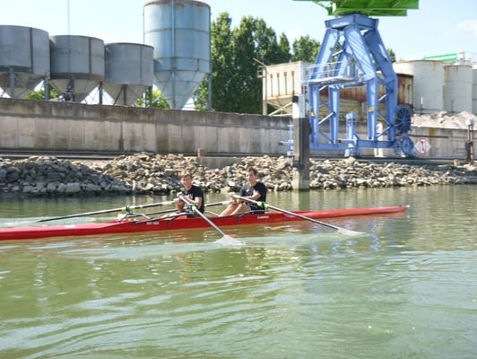 Projekt der Projektwoche 2018 in den Hafen und auf den Rhein zu verlegen. Bestes Wetter kam noch dazu. Und zahlreiche Helfer des RVI, um die Ruderausbildung professionell durchzuführen. Diese