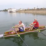 Von Andreas Bachmann – Tag 5 des Einerruderkurses. Astrid, Erol, Heiner und Philipp beginnen im Hafen. Später machen wir erste Ausflüge auf der heute sehr glatte Wasser des stark
