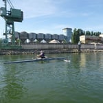 Zunächst haben wir im Hafen das Rudern im Einer erlernt und geübt. Später ging es raus auf den Rhein und bis zur Hessenkribbe. Und Rudern in der Hessenkribbe im Einer, das ist ein Hochgenuss.